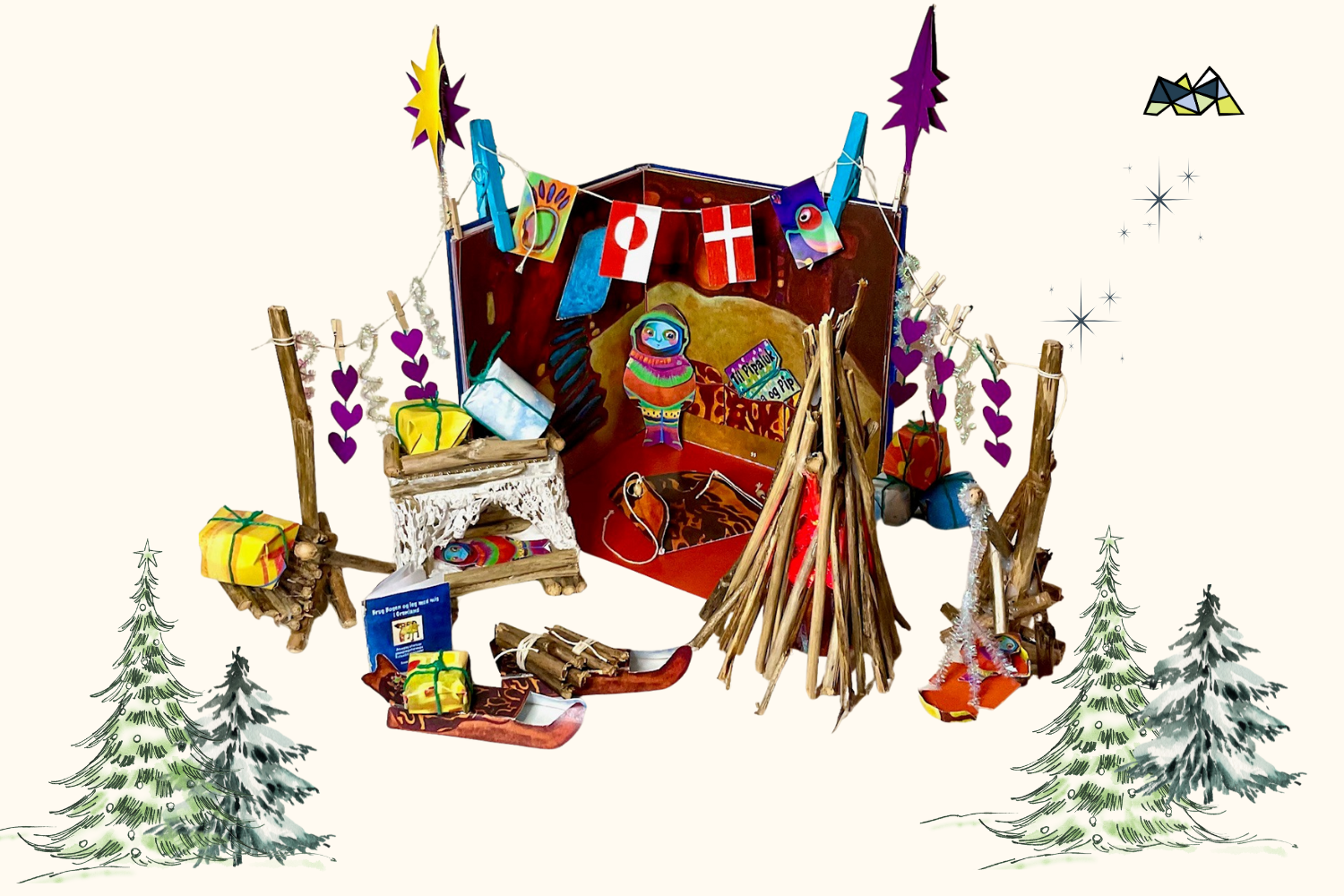 Sammen med Susse Volander, kunstner og forfatter bag den kreative børnebog: “Brug Bogen og leg med mig i Grønland”, kan du lave en hyggelig julehule.